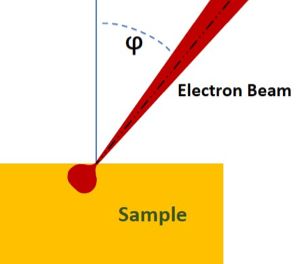 扫描电镜(SEM)是利用聚焦电子束进行微区样品表面形貌和成分分析,电子从发射源(灯丝)经光路系统最终到达样品表面,电子束直径可到 10 nm 以下,场发射电镜的聚集电子束直径会更小。 聚焦电子束到达样品表面会激发出多种物理信号,包括二次电子(SE),背散射电子(BSE),俄歇电子(AE)、特征 X 射线(X-ray)、透射电子(TE)等。 二次电子 信号主要来自样品表面,其深度范围 10 nm ,成像具有较高分辨率,能够很好的反映样品形貌特征。 背散射电子 是入射电子被样品原子核反弹回来的部分电子,电子能量较高,信号深度范围可到 2 μm。 X 射线 可以从样品较深的位置出射,其深度范围可到 5 μm。 图1 不同样品信号深度 聚焦电子束按一定方向入射到样品上,电子会受到材料中晶体位场和原子库仑场作用,其运动方向发生改变,称散射现象,且该过程是随机过程。 入射电子在样品内部的散射轨迹可以用 Monte Carlo 电子轨迹模型进行模拟。聚焦电子束与样品的作用区的形状类似水滴形状。根据 Monte Carlo 电子轨迹模型可以推导出入射电子最大穿透深度 H。 H = 0.0019 (A/Z) ^ 1.63 E0 ^ 1.71 / ρ 其中 A 为样品原子量,Z 为样品原子序数,E0 为入射电子能量(单位 KeV),ρ 为样品密度。 图2 电子束与样品作用区域模拟图 聚焦电子束与样品作用区域的大小主要与样品原子序数、电镜加速电压和电子束入射角度有关。 1) 样品原子序数 随原子序数增大,最大穿透深度降低。 如下图所示,当扫描电镜加速电压固定,随着样品原子序数增加,其作用区域不断减小。随原子序数增大,入射电子越容易散射,更容易偏离起始方向,相互作用区域会减少,最大穿透深度也降低。 图3 原子序数对相互作用区域的影响 2) 电镜加速电压 随着加速电压增大,最大穿透深度增加。 如下图所示,对同一种材料,随着加速电压增加(5~25kV),其作用区域不断变大。分别采用 5kV、10kV、15kV,利用背散射探头观察碳材料,5kV 下样品表面细节更丰富,15kV 样品形貌有明显穿透感。 加速电压变大,入射电子的能量也增加,电子的穿透深度变深,电子轨迹在样品表面变化不大,随着电子穿透深度增加和多次散射发生,入射电子方向也发生变化,作用区域也变大。 图4 加速电压对相互作用区域的影响 图5 背散射图像,不同加速电压下的碳材料形貌 3) 电子束入射角度 入射角度增大,作用区域越小。 入射电子与样品作用区域形状类似水滴,当样品表面不平或发生倾斜时,电子束作用区域亦会受到影响。 图6 入射电子束角度